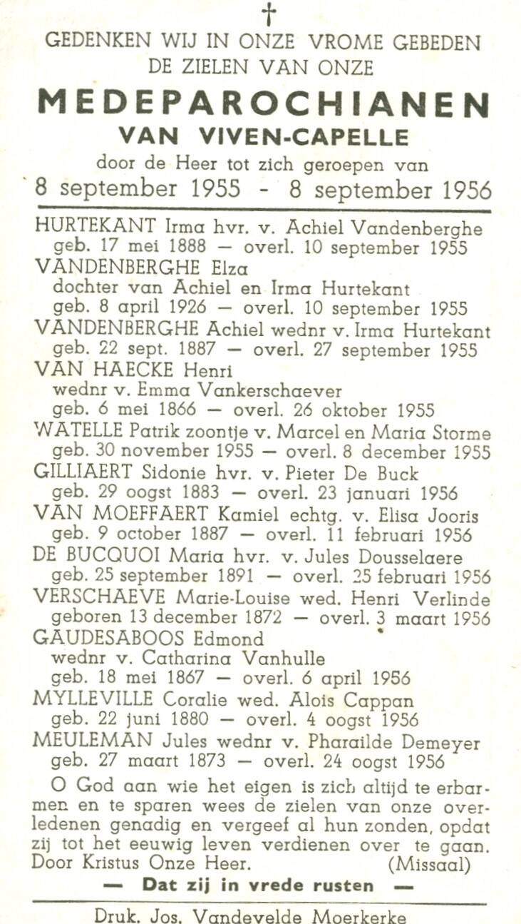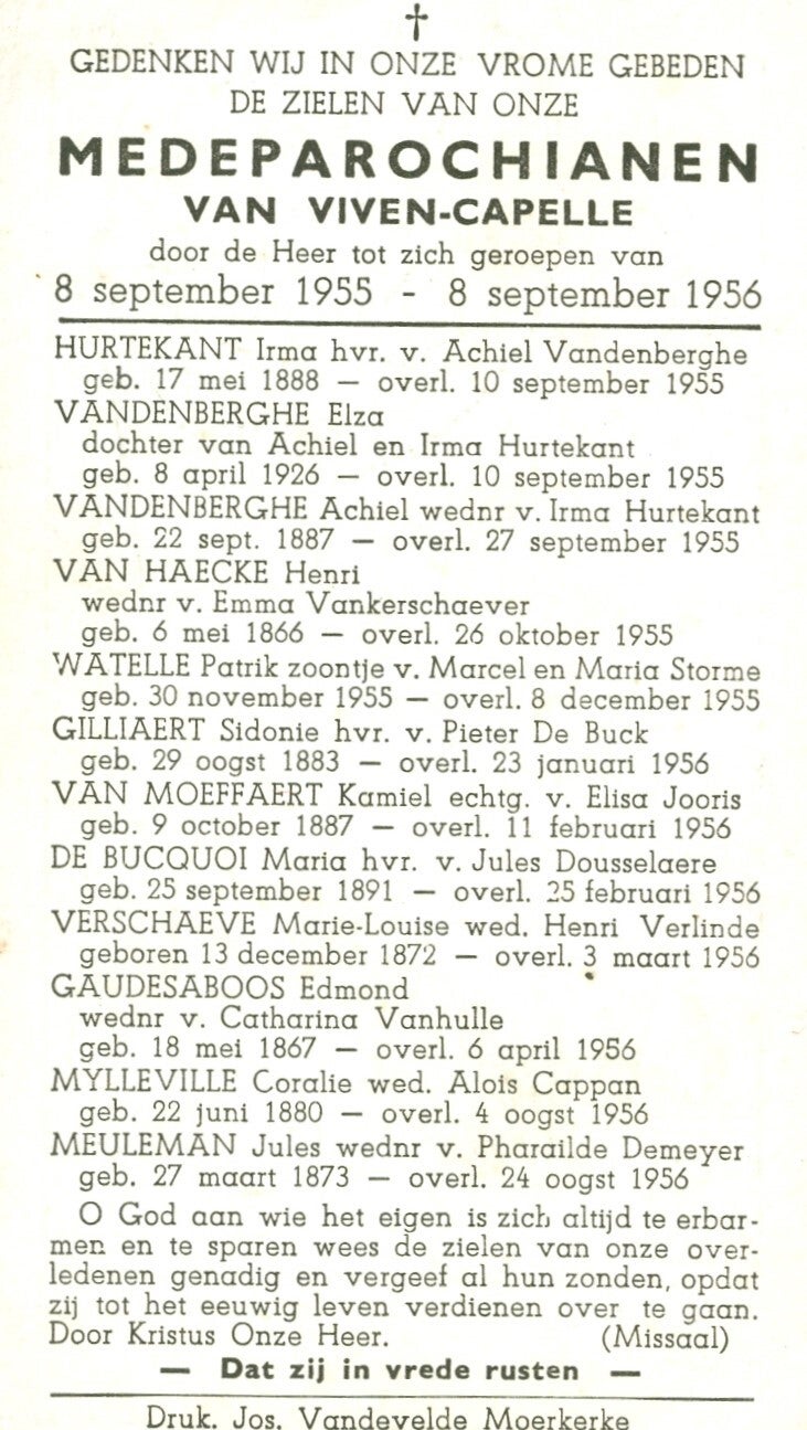 Collectie jaarbidprentjes parochie Onze-Lieve-Vrouw-Geboorte Vivenkapelle
