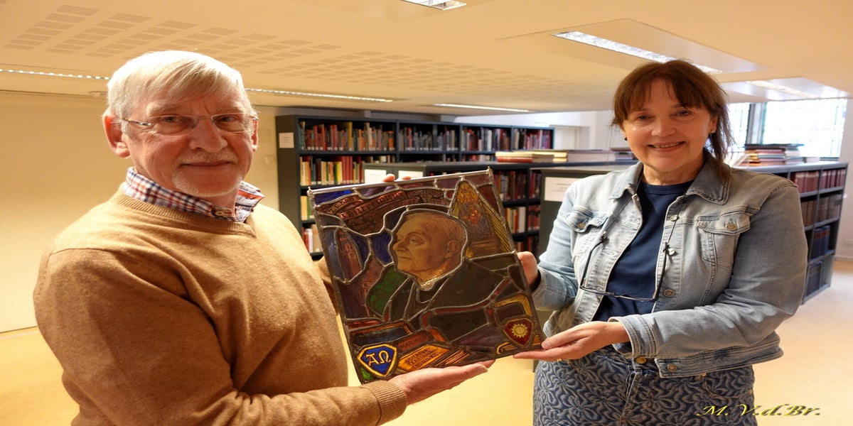 Schenking glasraampjes aan het universiteitsarchief in Leuven